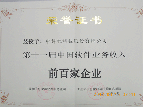 公司榮獲2012年(第十一屆)中國軟件業務收入前百家企業